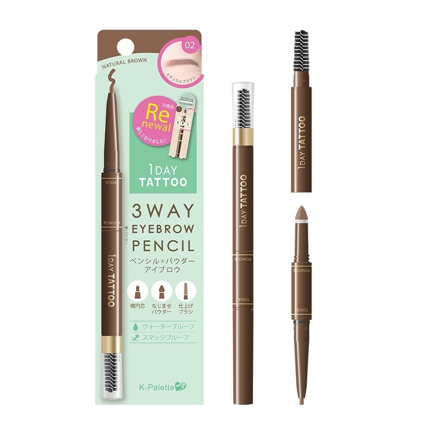 KPALETTE 3WAY EYEBROW PENCIL 02 NATURAL BROWN