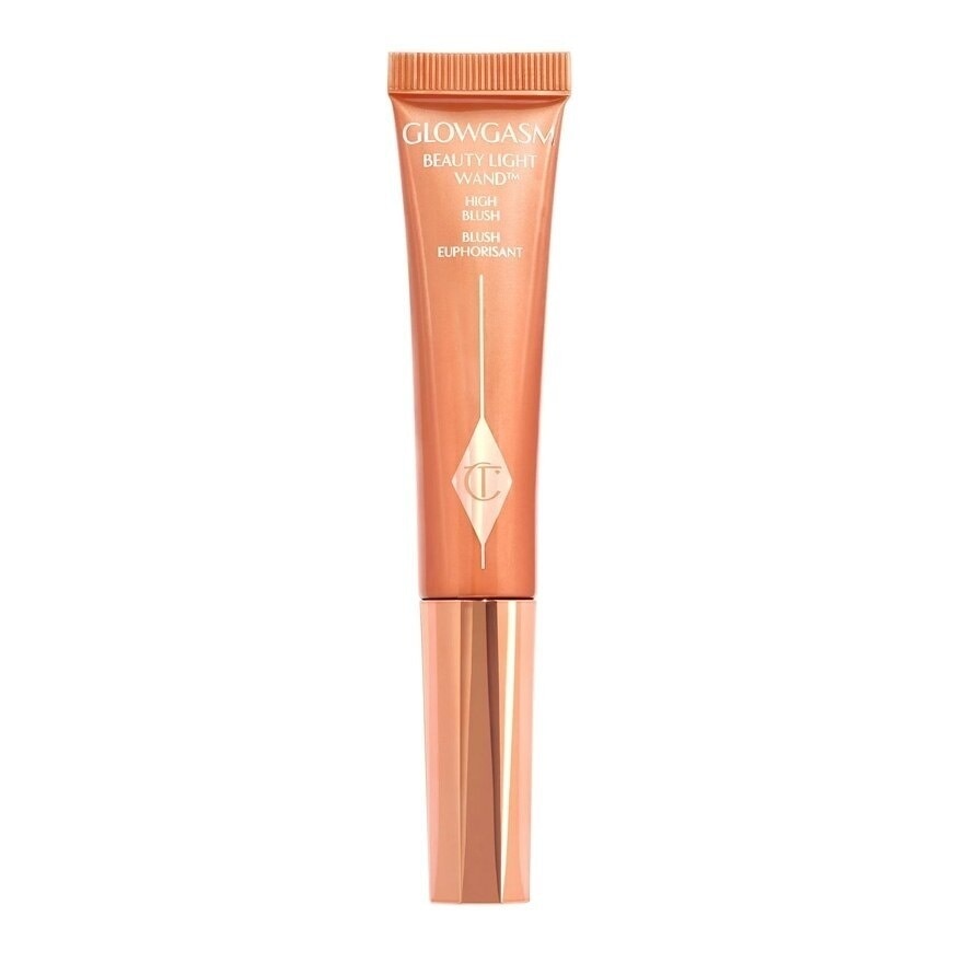 The Charlotte Tilbury Beauty Light Wand in Peachgasm is a liquid highlighter-blush hybrid that imparts a radiant, peachy glow to the cheeks. Its buildable formula enhances the skin's luminosity, providing a glossy highlight that plays with the light beautifully.